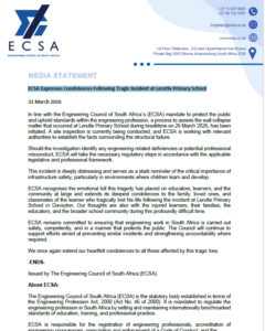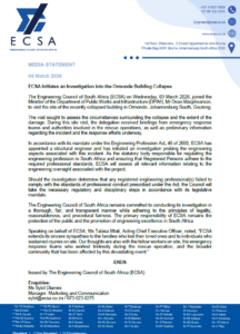 Media Statement ECSA Receives an Appeal from Registered Person Implicated in the George Building Collapse